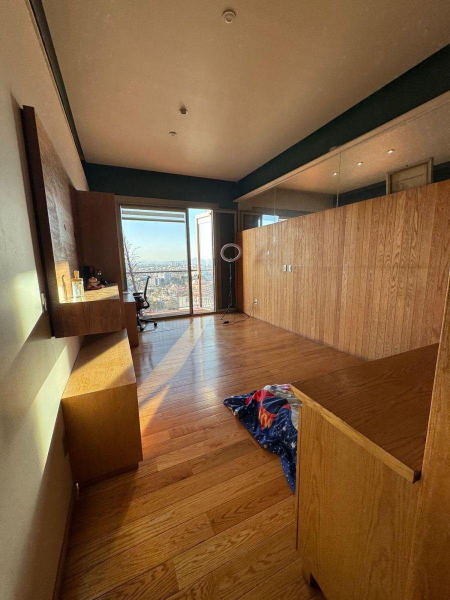 El departamento está revestido con acabados de madera fina, duela y granito, que destilan sofisticación y durabilidad. Cuenta con tres amplias recámaras, cada una equipada con su propio baño completo y vestidor independiente, garantizando privacidad y confort para todos los habitantes. La estancia del departamento conecta con una vista espectacular al icónico Monumento a la Revolución, convirtiéndose en un espacio único para relajarte y disfrutar de la ciudad.